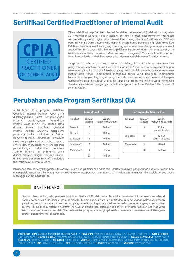 Pionir dari Lembaga Pendidikan Profesi Auditor Internal di Indonesia yang selalu berupaya meningkatkan kompetensi, profesionalitas dan Integritas Auditor Internal.