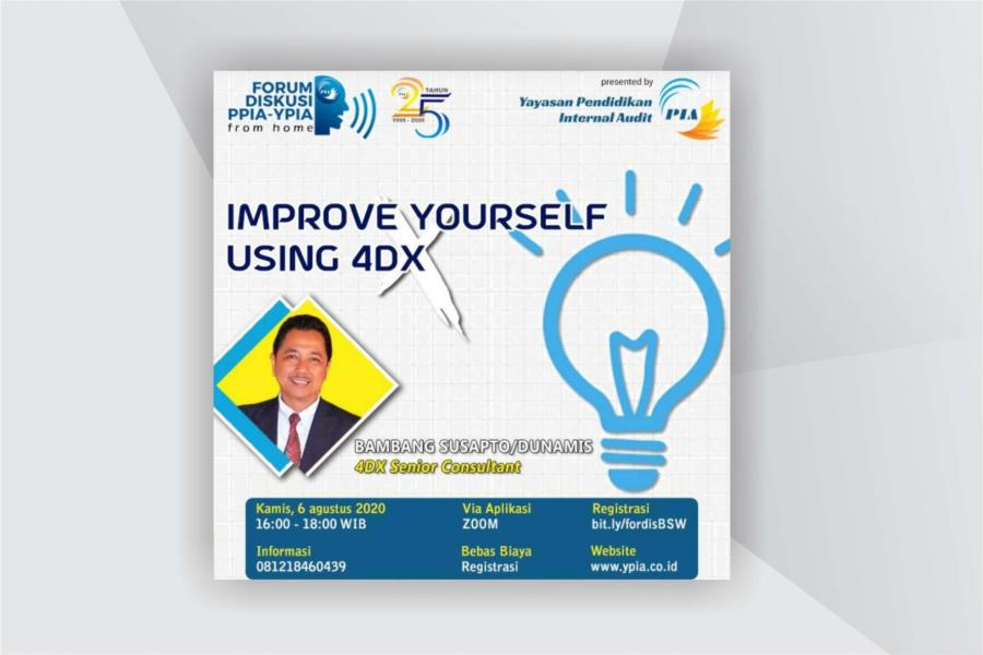 Pandemi Covid-19 tidak membuat PPIA YPIA untuk berhenti membagikan ilmu pengetahuan kepada Instruktur YPIA untuk mengembangkan wawasan dan pengetahuannya. Pada tanggal 6 Agustus 2020 menyelenggarakan Fordis (Forum Diskusi) PPIA YPIA dengan tema Improve Yourself Using 4DXyang dibawakan oleh Bapak Bambang Susapto, Ak, MM. yang merupakan seorang konsultan senior 4DX di Dunamis.