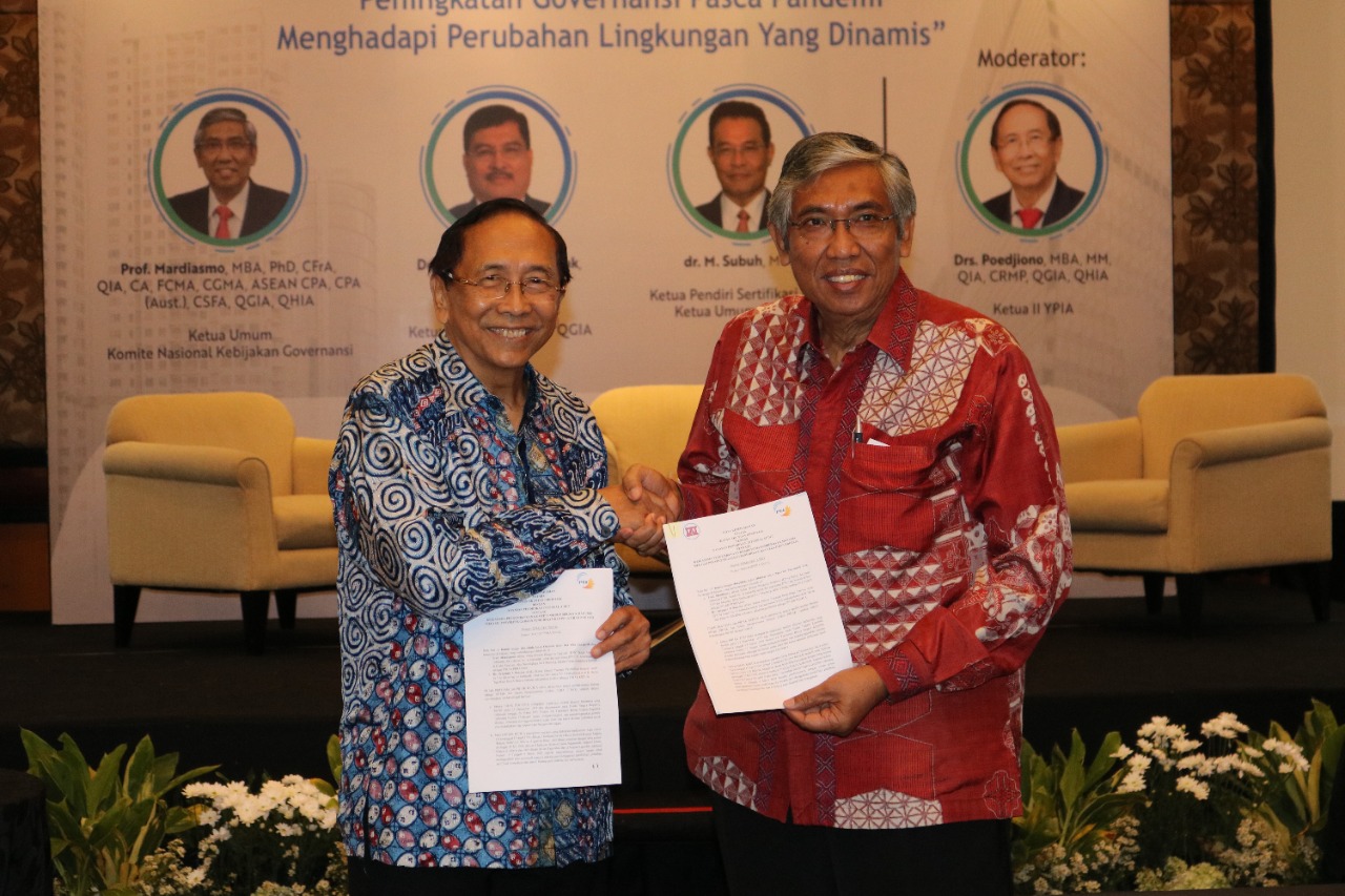 Pada kesempatan tersebut juga dilakukan penandatangan Nota Kesepakatan antara YPIA (Yayasan Pendidikan Internal Audit) dan IAI (Ikatan Akuntan Indonesia). Penandatangan nota kesepakatan diwakili oleh Dr. Setyanto Sebagai Ketua Umum YPIA dan Prof. Mardiasmo Ketua Dewan Pengurus Nasional IAI, nota kesepakatan bertujuan membangun kerjasama pengembangan kompetensi sumberdaya manusia melalui penyelenggaraan pendidikan dan pelatihan profesi.
